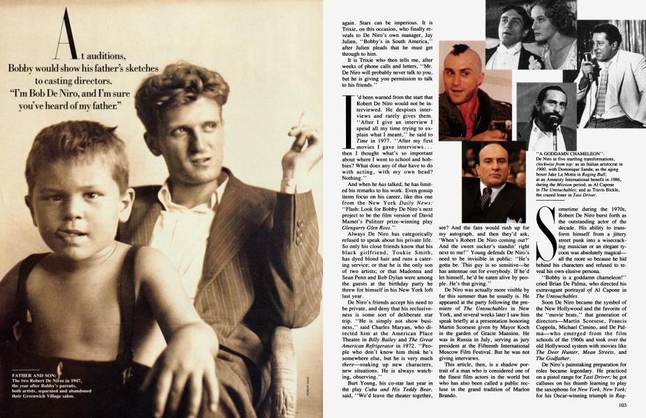 October 1987 Patricia BosworthHe's the greatest movie actor of his generation, but he remains a mystery—to the public, to the industry, even to his closest friends. Is he pulling a Brando? Or is the secret that he has no secret? Hardly. PATRICIA BOSWORTH spoke to fifty people around him and finally pieced together the De Niro puzzle