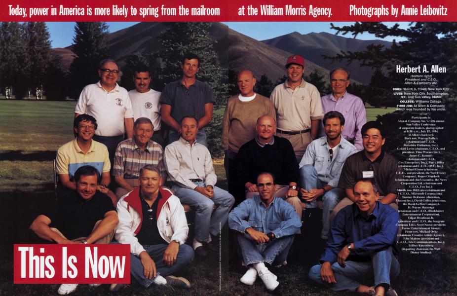 All these men were in Sun Valley at the behest of Herbert A. Allen, premier investment adviser of the Information Age, who owns a nearby ranch. Allen's involvement in the entertainment industry began in the 1970s, when he became chairman of Columbia Pictures. "I cannot think now why I invested in a film company," he says with that flat Wasp detachment. "I think I was bored." To keep himself amused, the 54-year-old merchant banker has been involved in almost every major deal of the past decade, including the sale of Columbia to Sony, Matsushita's purchase of MCA/Universal, the battle for Paramount, and now Viacom's sale of Madison Square Garden, the Stanley Cup champion New York Rangers, the New York Knicks, the Paramount theater, and the MSG sports cable network.