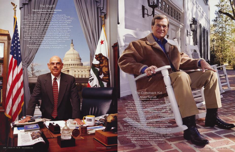 In the accompanying portfolio, Vanity Fair presents some of those fresh faces, along with a few old, familiar ones—from Representative John Dingell's to Senator Trent Lott's—that have suddenly been revived with a shot or two of electoral Restylane. There are portraits of Young Turks and Old Bulls and Power Brokers of every stripe. And a snapshot or two of Those Who Would Be King.