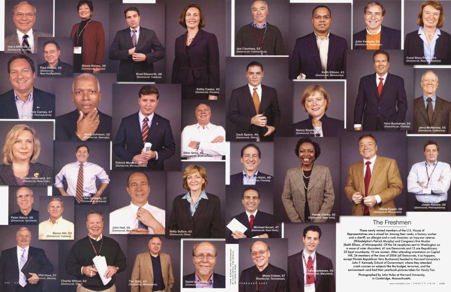 These newly minted members of the U.S. House of Representatives are a mixed lot. Among their ranks: a factory worker and a sheriff; an allergist and a rock musician; an Iraq-war veteran (Philadelphia's Patrick Murphy) and Congress's first Muslim (Keith Ellison, of Minneapolis). Of the 54 neophytes sent to Washington on a wave of voter discontent, 41 are Democrats and 13 are Republicans; 23 beat incumbents; 10 are women. After attending orientation on Capitol Hill, 34 members of the class of 2006 (all Democrats, it so happens, except Florida Republican Vern Buchanan) headed to Harvard University's John F. Kennedy School of Government, where they attended crash courses on subjects like the budget, terrorism, and the environment—and had their yearbook pictures taken for Vanity Fair.