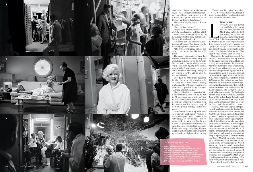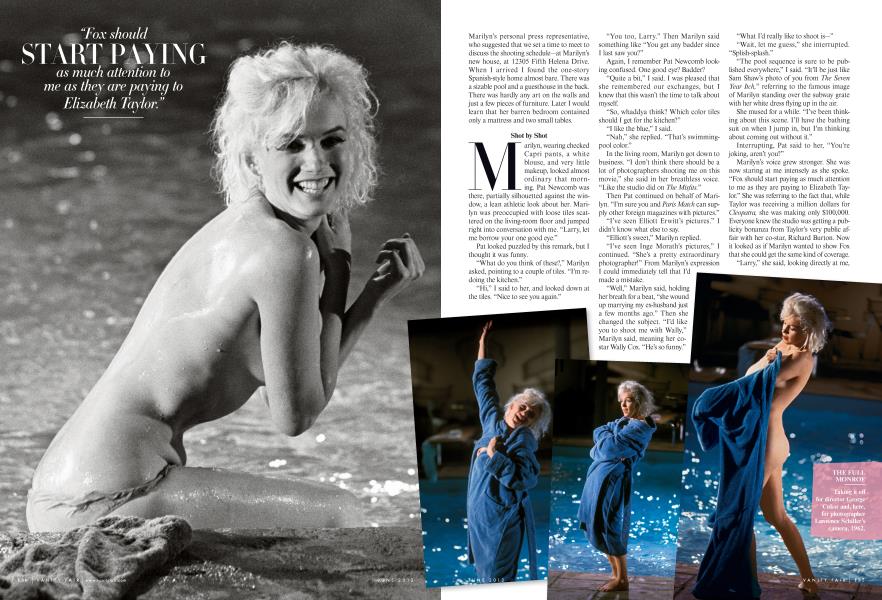 June 2012 Lawrence SchillerIt was the assignment of an ambitious young photographer’s dreams: capturing Hollywood’s sexiest star for Look magazine in 1960. The chemistry with Marilyn Monroe seemed promising, and their professional relationship deepened when he photographed her on the set of her final, never finished movie, Something's Got to Give. As the 50th anniversary of her death approaches, LAWRENCE SCHILLER, in an adaptation from his memoir of those sessions, recalls Monroe’s mix of vulnerability and cold calculation as she guided his camera toward the ultimate revelation—breathtaking nude shots, some unseen till now—and their tense encounter the day before she died